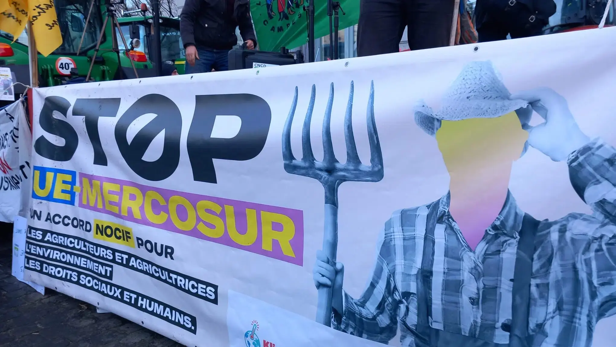 Protests in a French countryside. The sign reads, “NO to Mercosur,” Dec. 2024. X/ @PoingdeVues